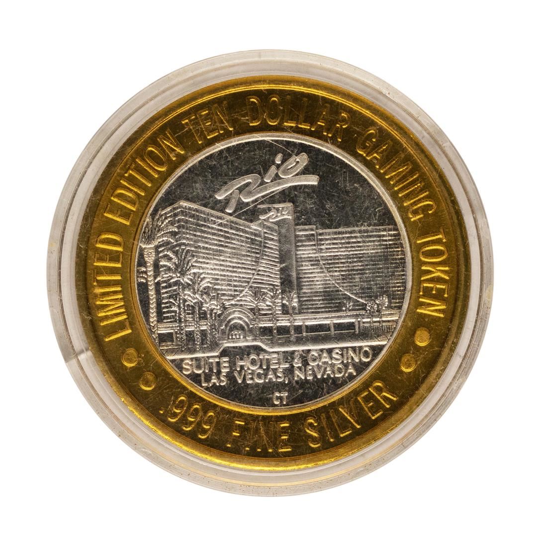 One .999 Fine Silver Rio Las Vegas, Nevada $10 Limited Edition Gaming Token.