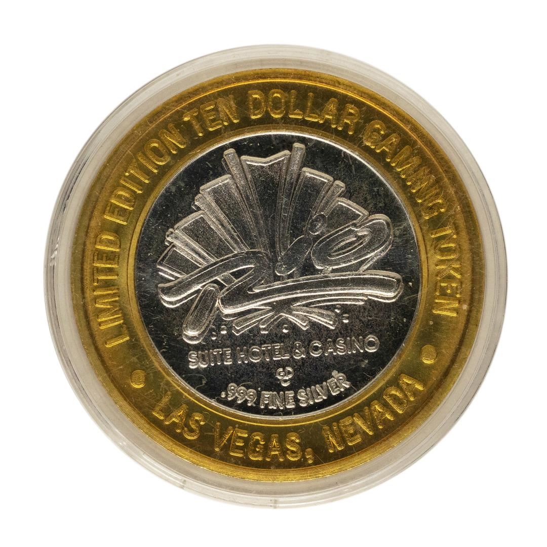 One .999 Fine Silver Rio Las Vegas, Nevada $10 Limited Edition Gaming Token.