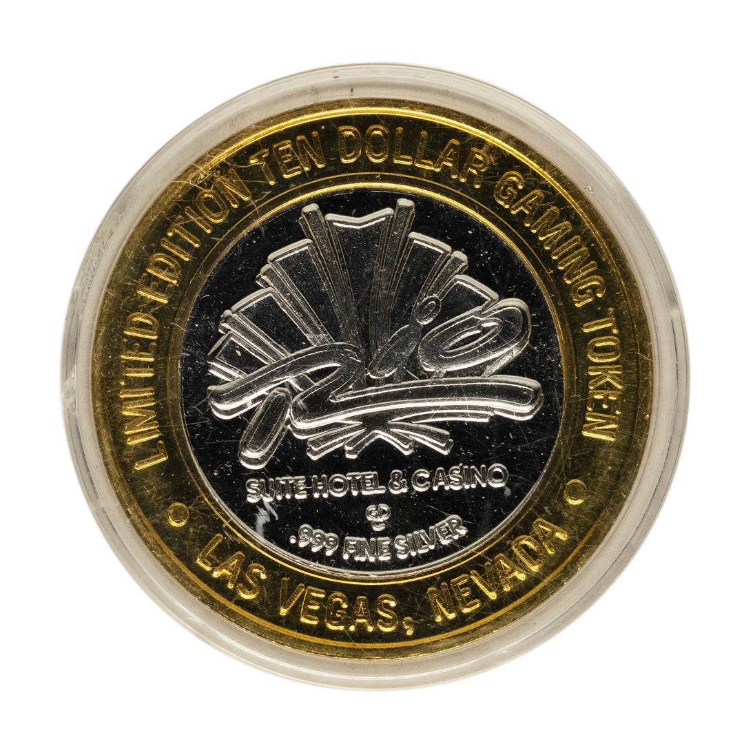 One .999 Fine Silver Rio Las Vegas, Nevada $10 Limited Edition Gaming Token.