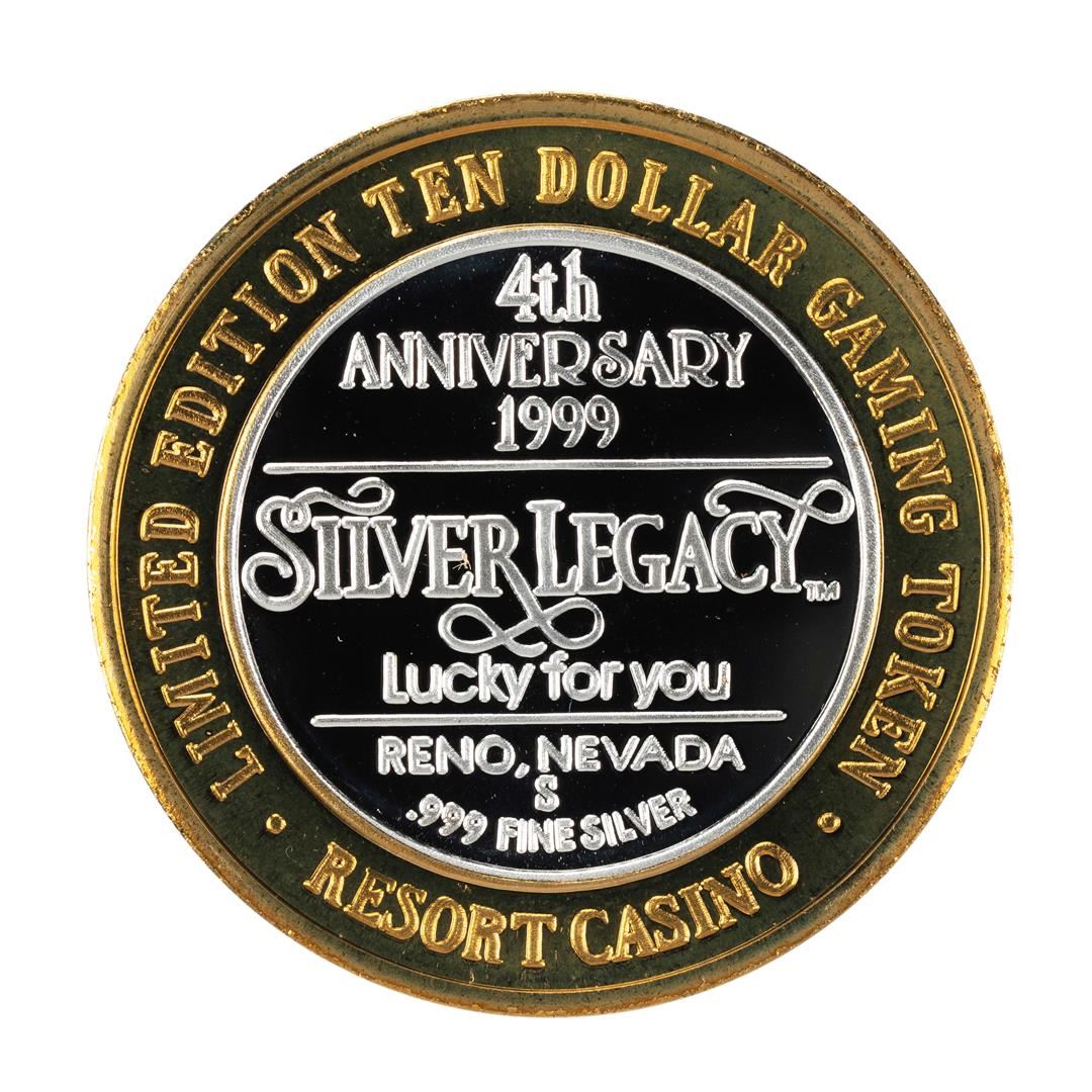 One .999 Fine Silver Silver Legacy Reno, Nevada $10 Limited Edition Gaming Token.