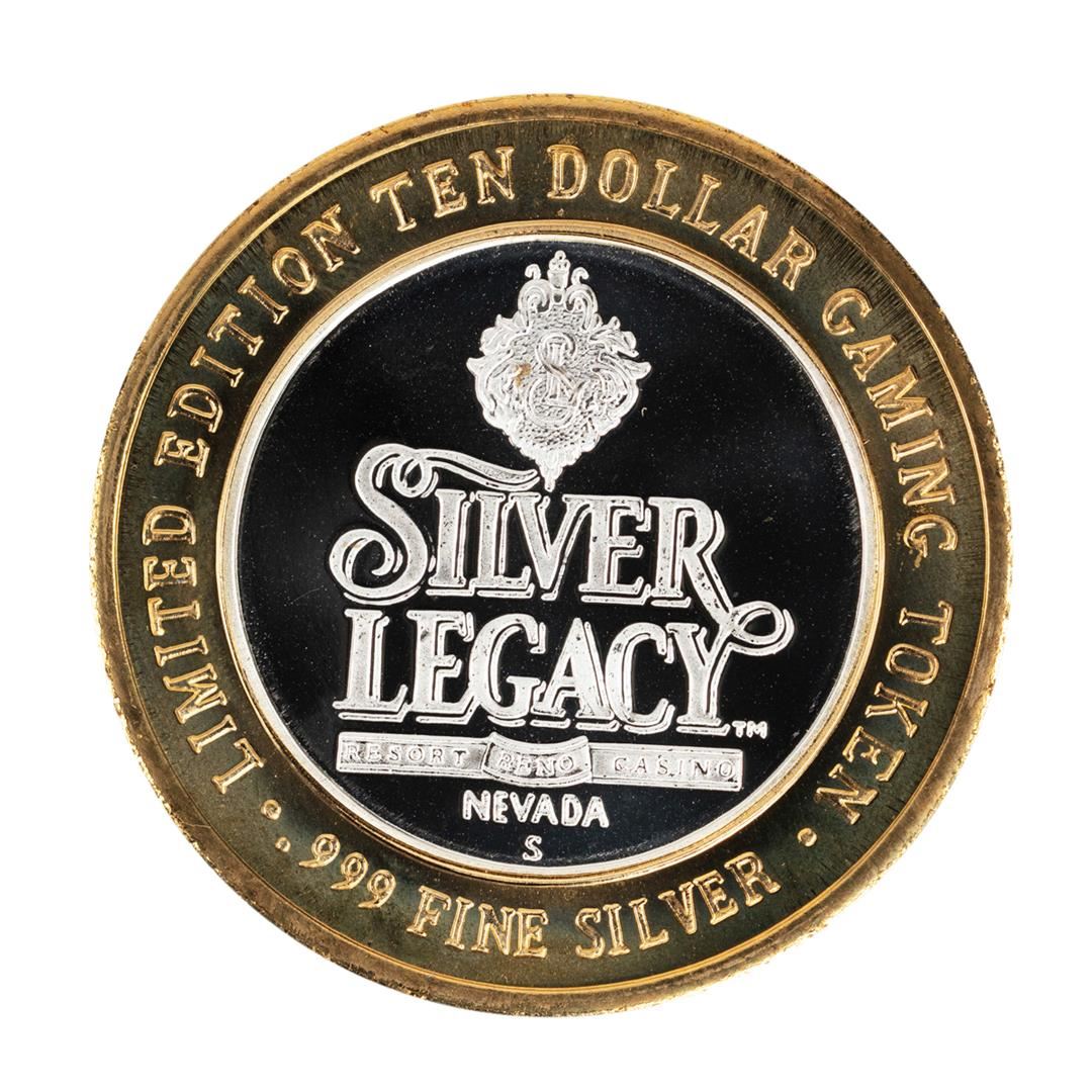 One .999 Fine Silver Silver Legacy Reno, Nevada $10 Limited Edition Gaming Token.