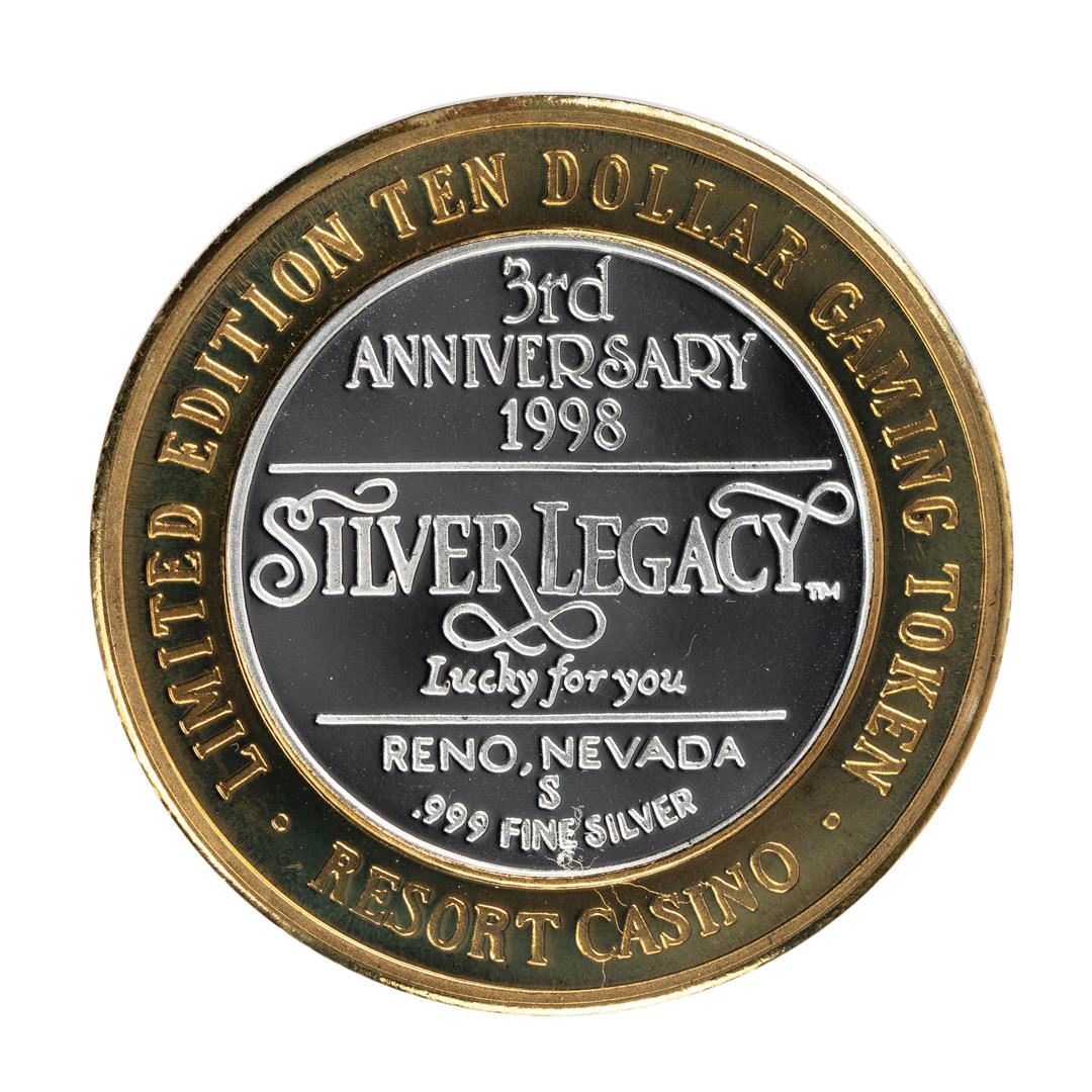 One .999 Fine Silver Silver Legacy Reno, Nevada $10 Limited Edition Gaming Token.