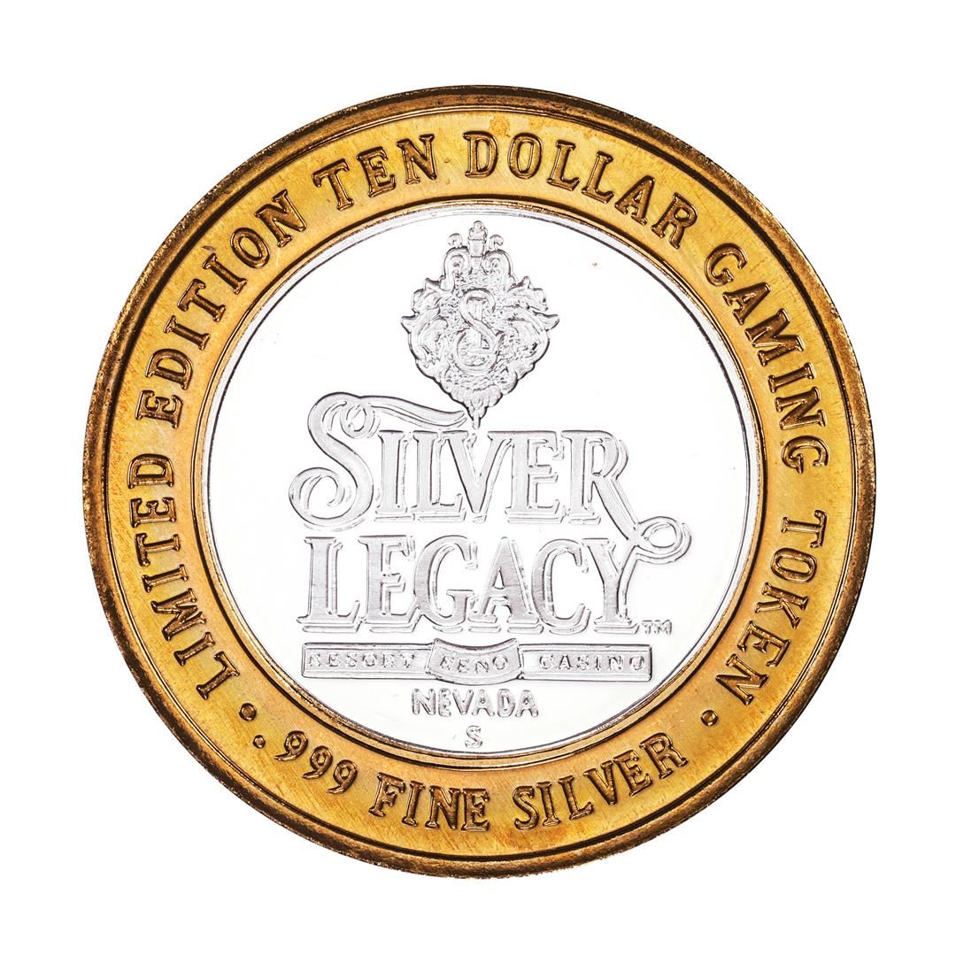 One .999 Fine Silver Silver Legacy Reno, Nevada $10 Limited Edition Gaming Token.