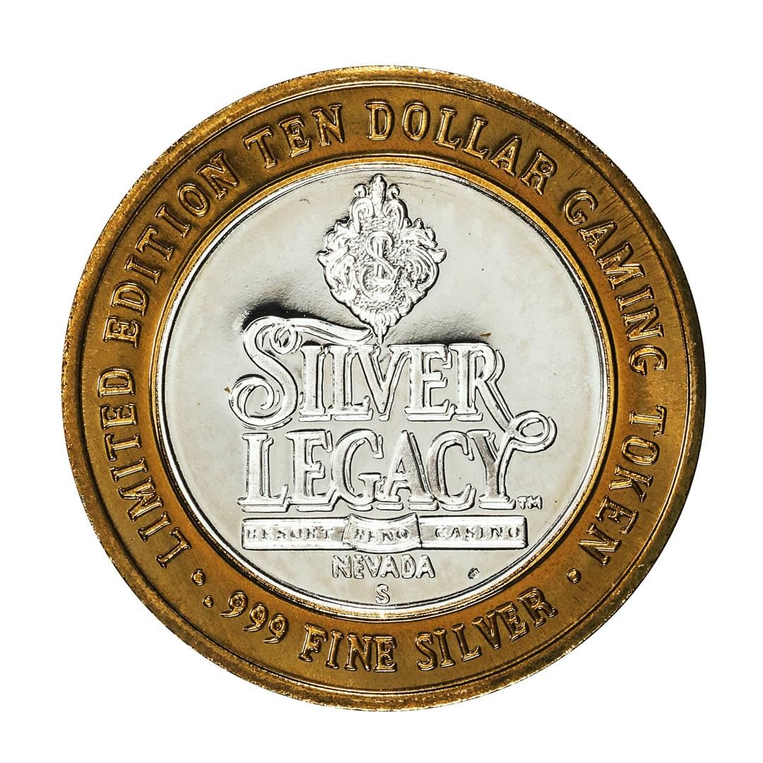 One .999 Fine Silver Silver Legacy Reno, Nevada $10 Limited Edition Gaming Token.