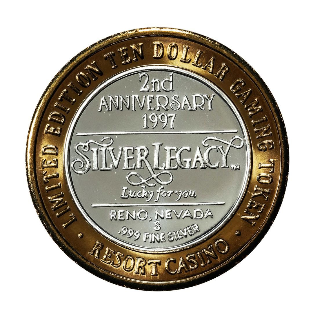 One .999 Fine Silver Silver Legacy Reno, Nevada $10 Limited Edition Gaming Token.