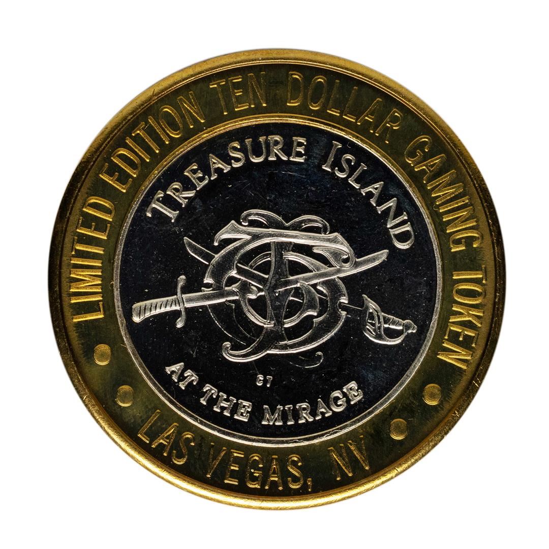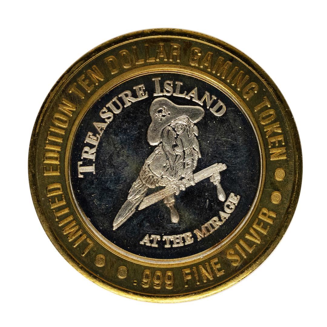 One .999 Fine Silver Treasure Island Las Vegas, Nevada $10 Limited Edition Gaming Token.