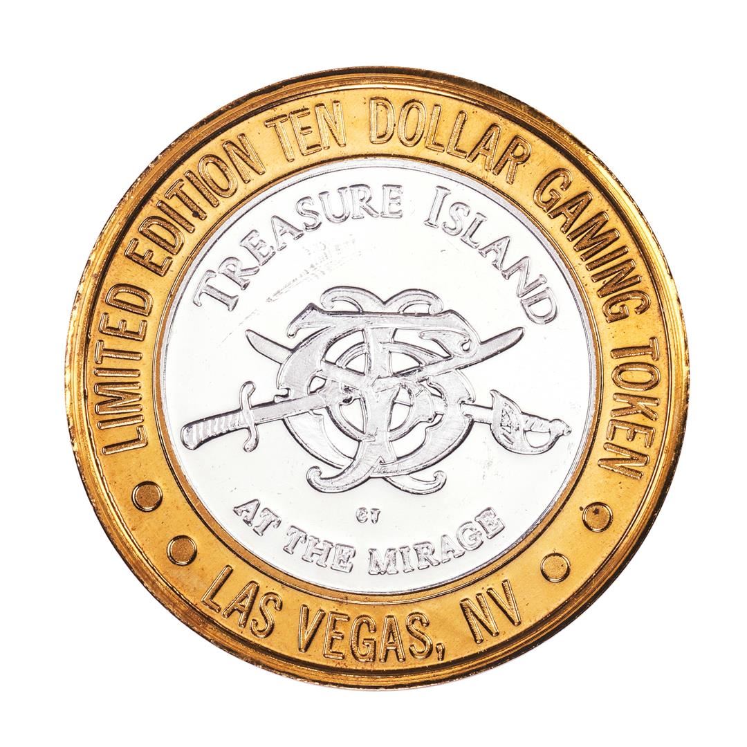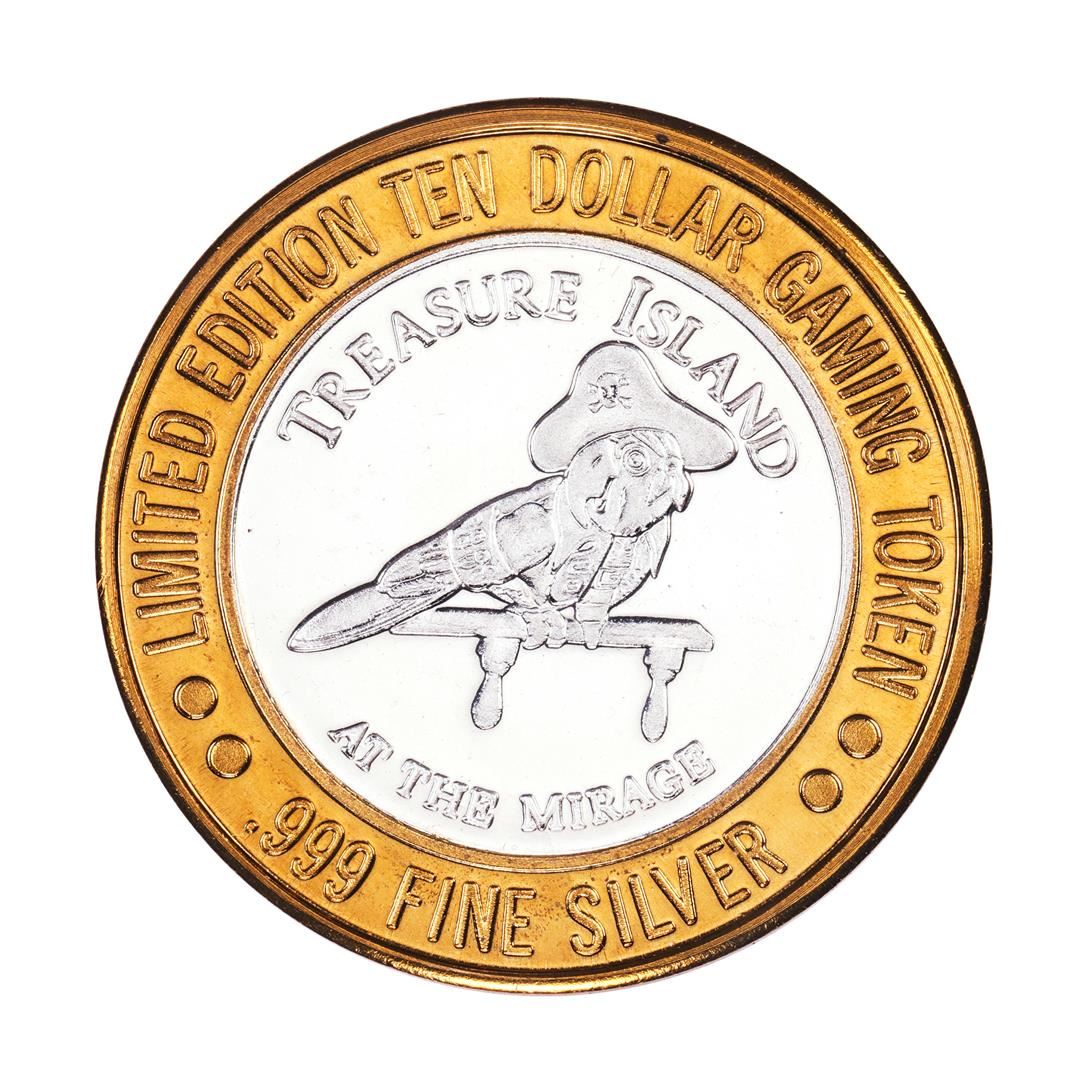 One .999 Fine Silver Treasure Island Las Vegas, Nevada $10 Limited Edition Gaming Token.