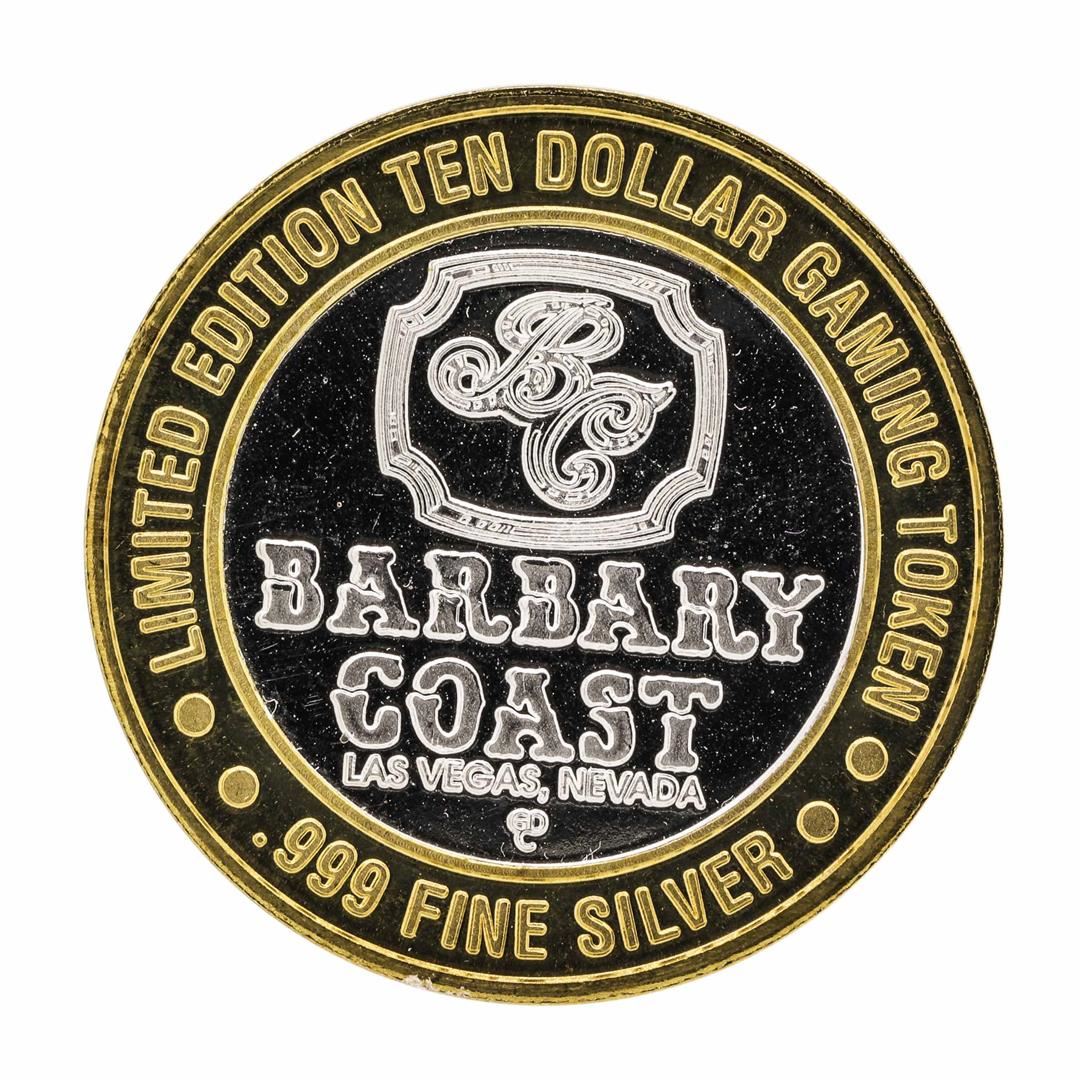 One .999 Silver Barbary Coast Las Vegas, Nevada $10 Limited Edition Gaming Token.