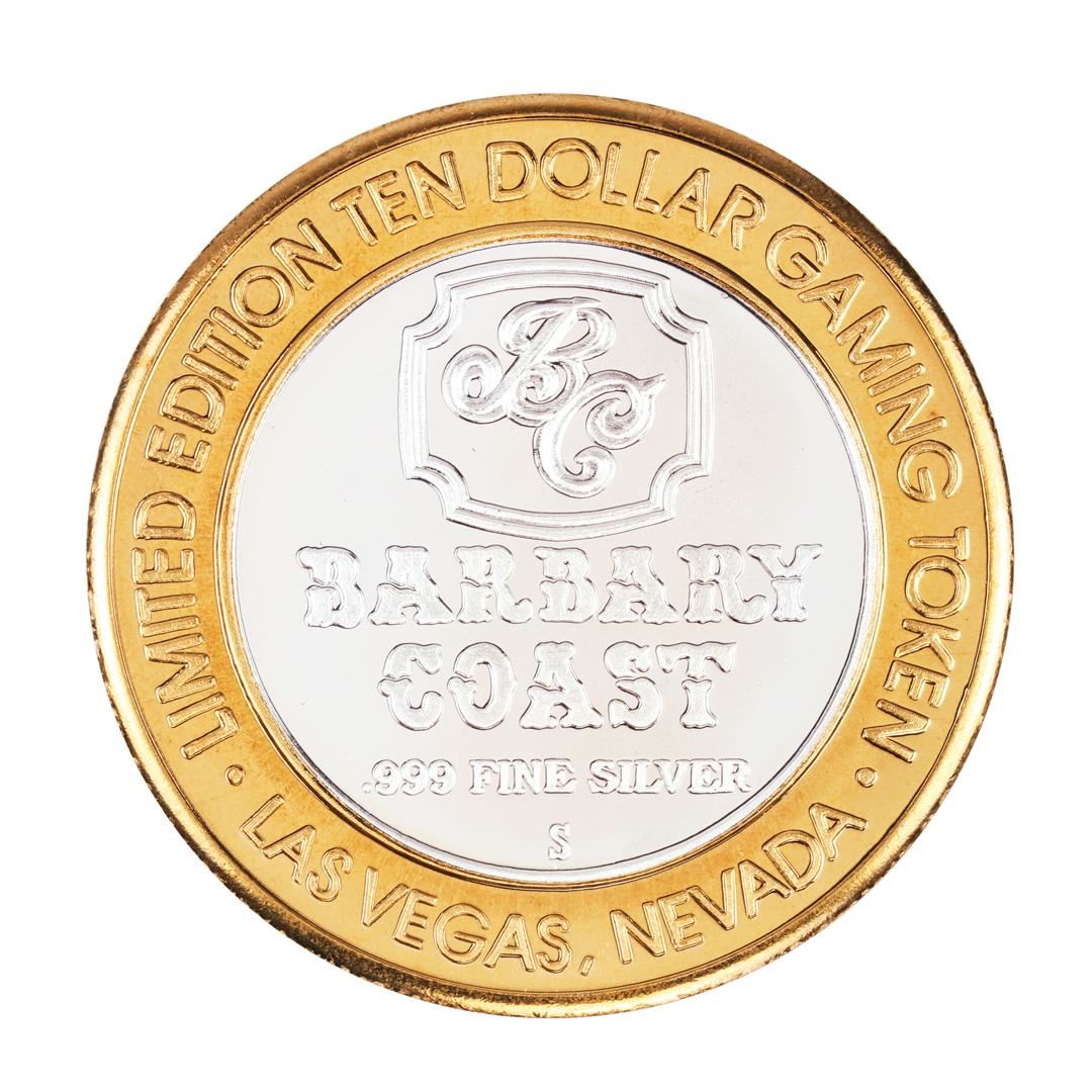 One .999 Silver Barbary Coast Las Vegas, Nevada $10 Limited Edition Gaming Token.