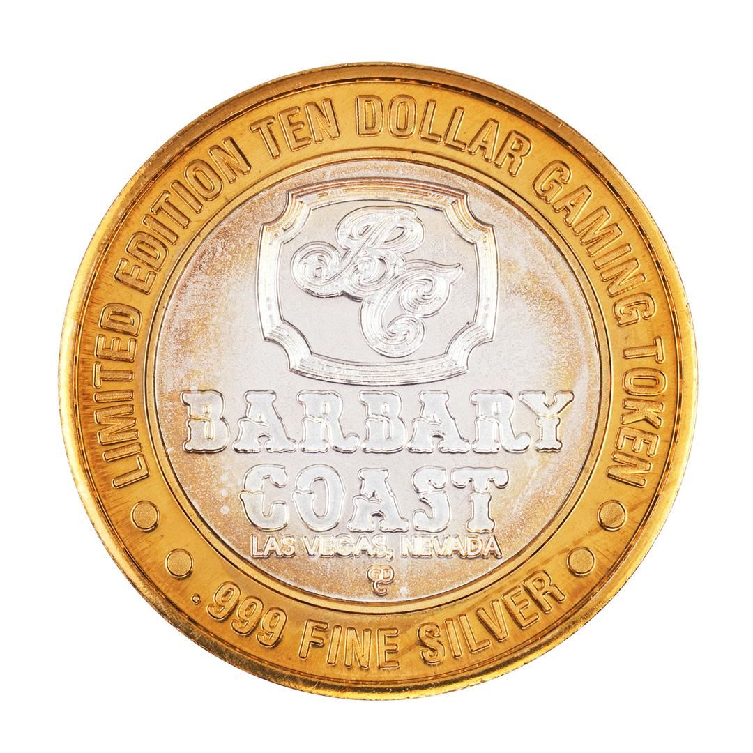 One .999 Silver Barbary Coast Las Vegas, Nevada $10 Limited Edition Gaming Token.