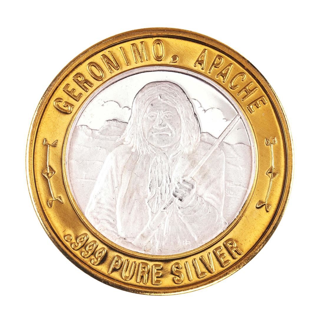 One .999 Silver Geronimo Apache $10 Casino Limited Native American Series Gaming Token.