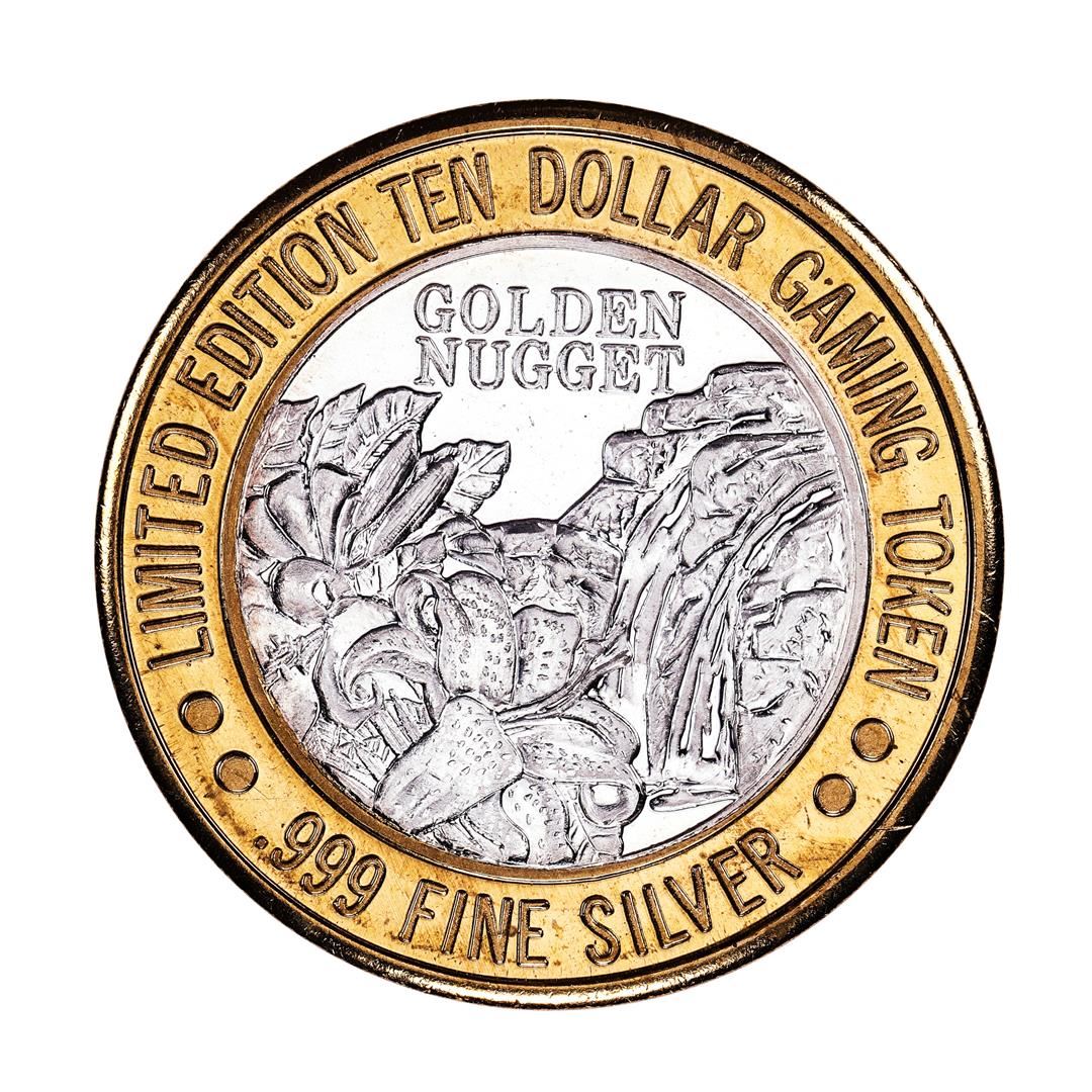 One .999 Silver Golden Nugget Laughlin, Nevada $10 Limited Edition Casino Gaming Token.