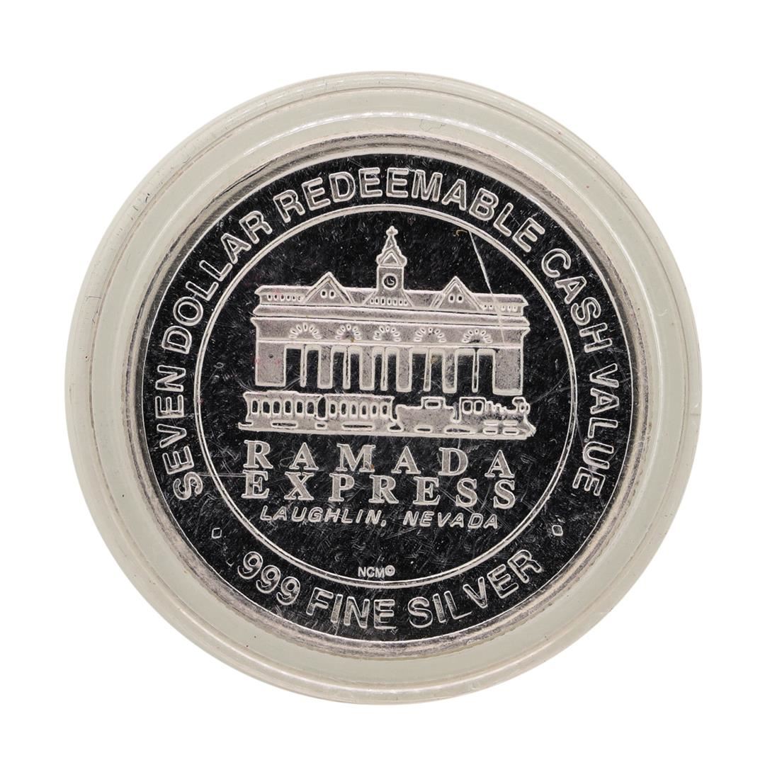 One .999 Silver Ramada Express Laughlin, NV $7 Redeemable Cash Value Gaming Token.