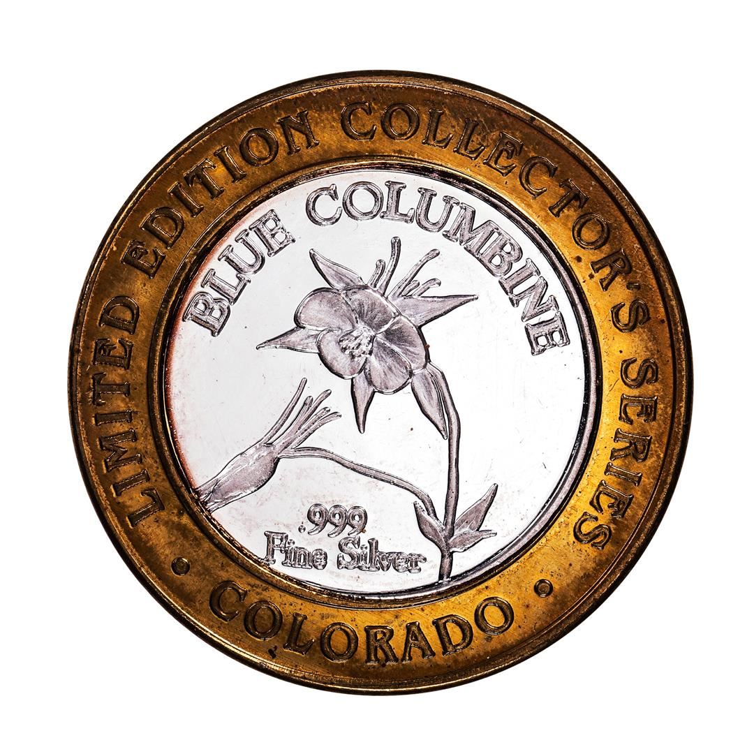 One .999 Silver State of Colorado Collectors Series Blue Columbine Gaming Token.