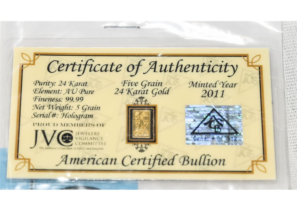 .999 certified solid gold bar