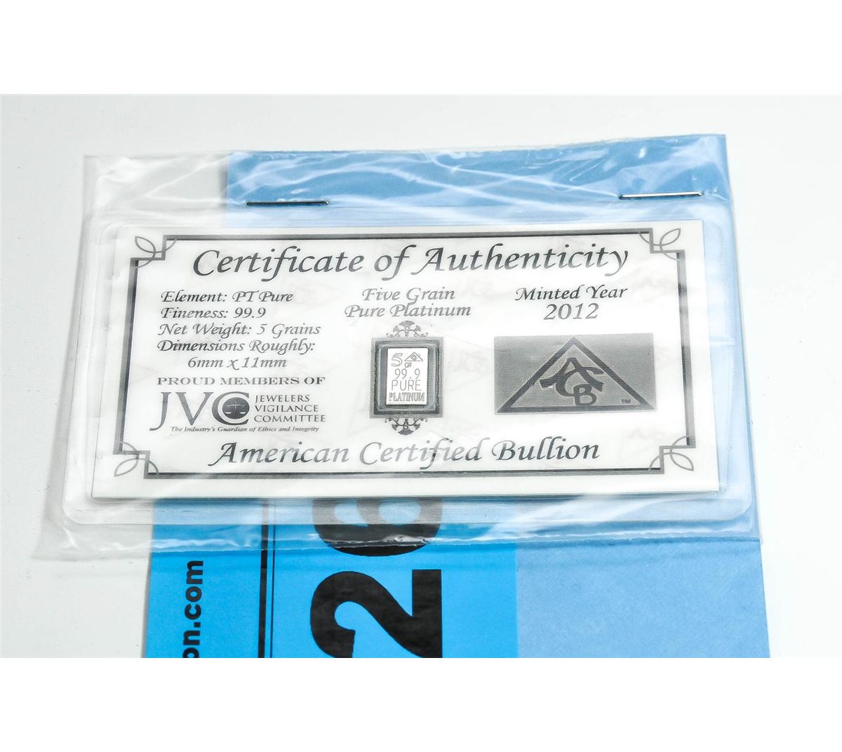 .999 solid platinum certified bar