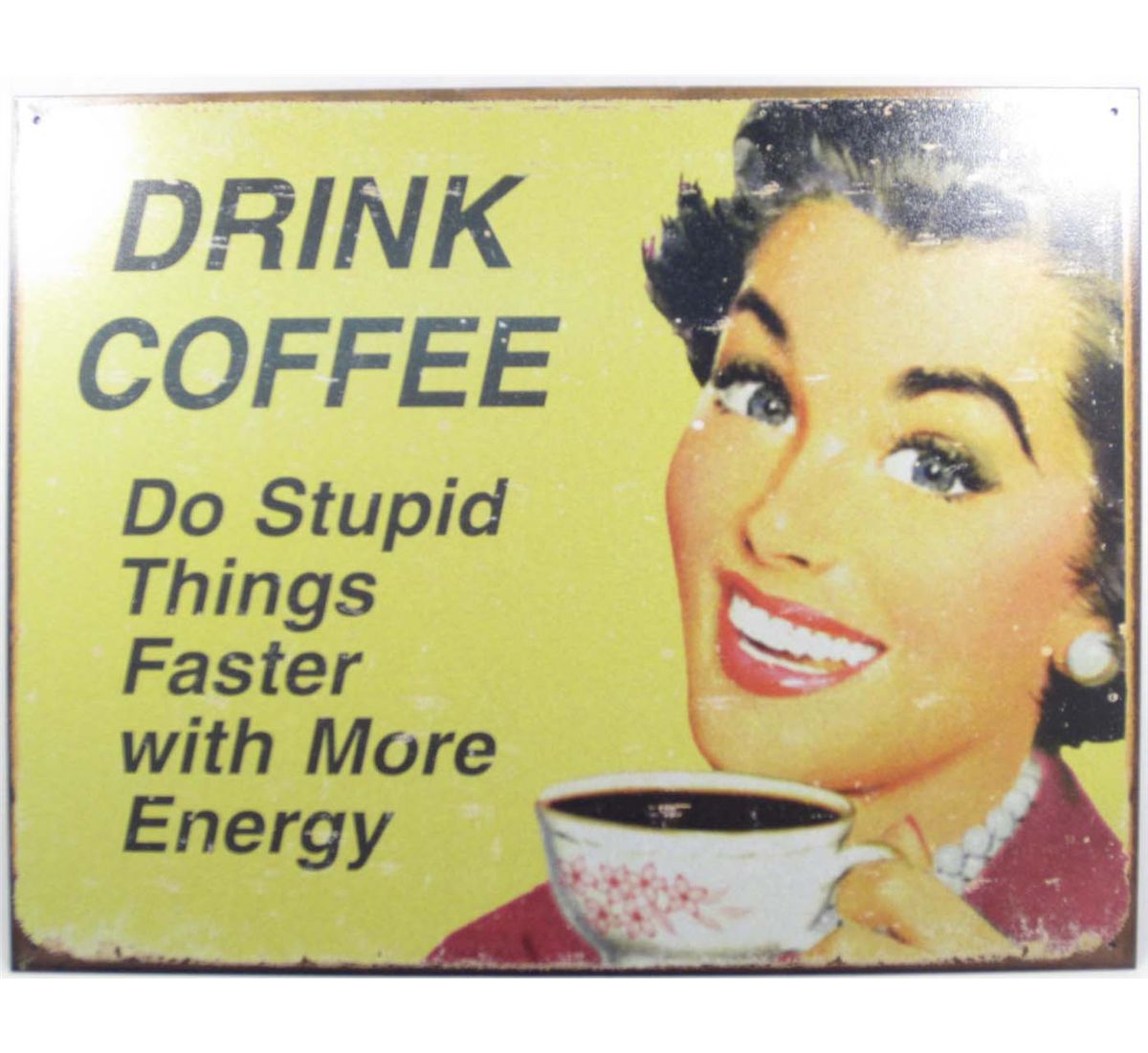 9995 - DRINK COFFEE DO STUPID THINGS FASTER FUNNY METAL SIGN