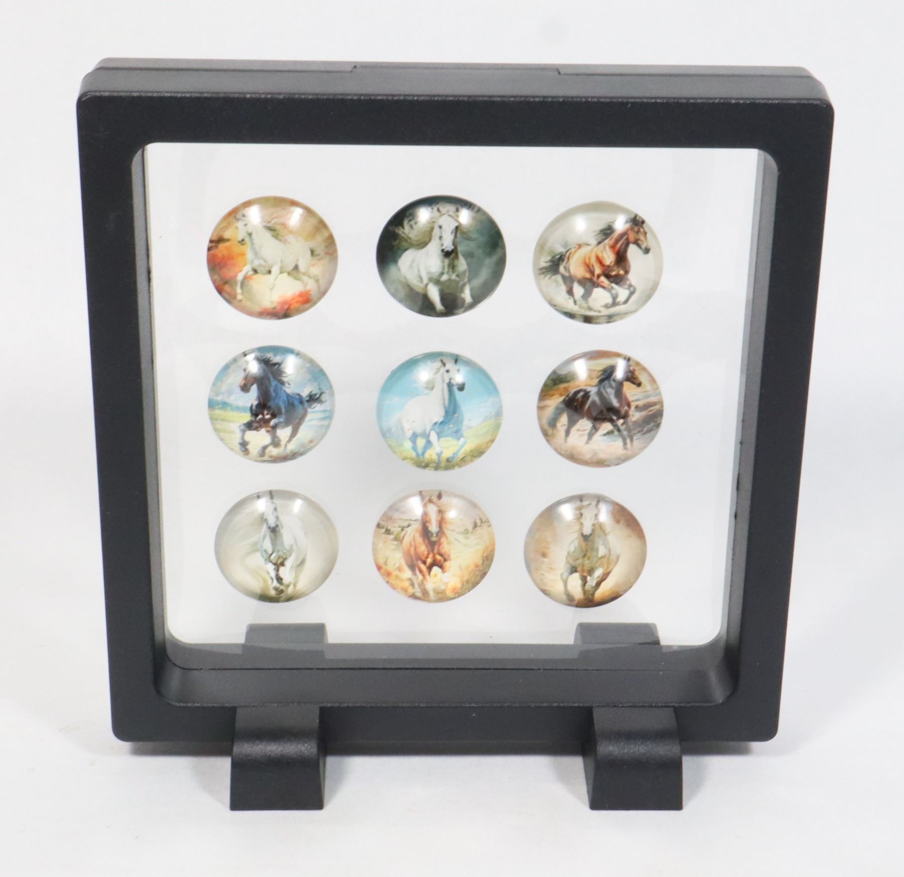 CHARMS IN FLOATING DISPLAY CASE WITH STAND