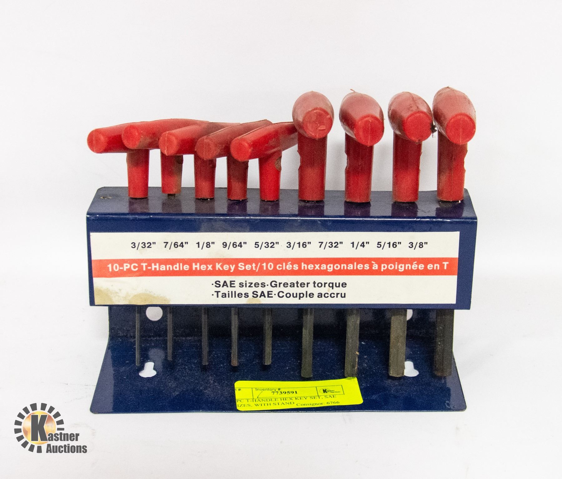 9PC T-HANDLE HEX KEY SET, SAE SIZES, WITH STAND