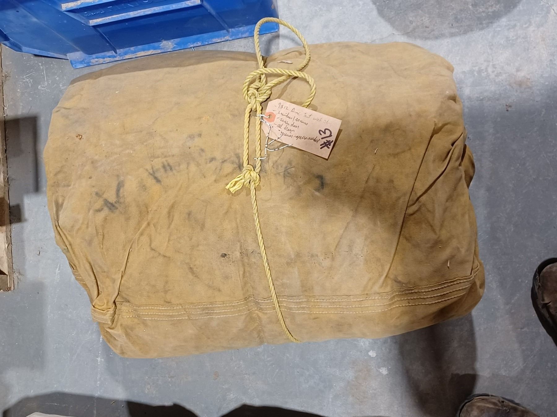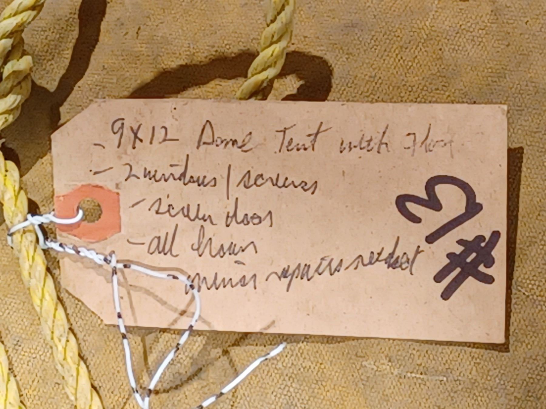 9X12' CANVAS DOME TENT WITH FLOOR, WINDOWS, DOOR, MINOR REPAIRS REQUIRED
