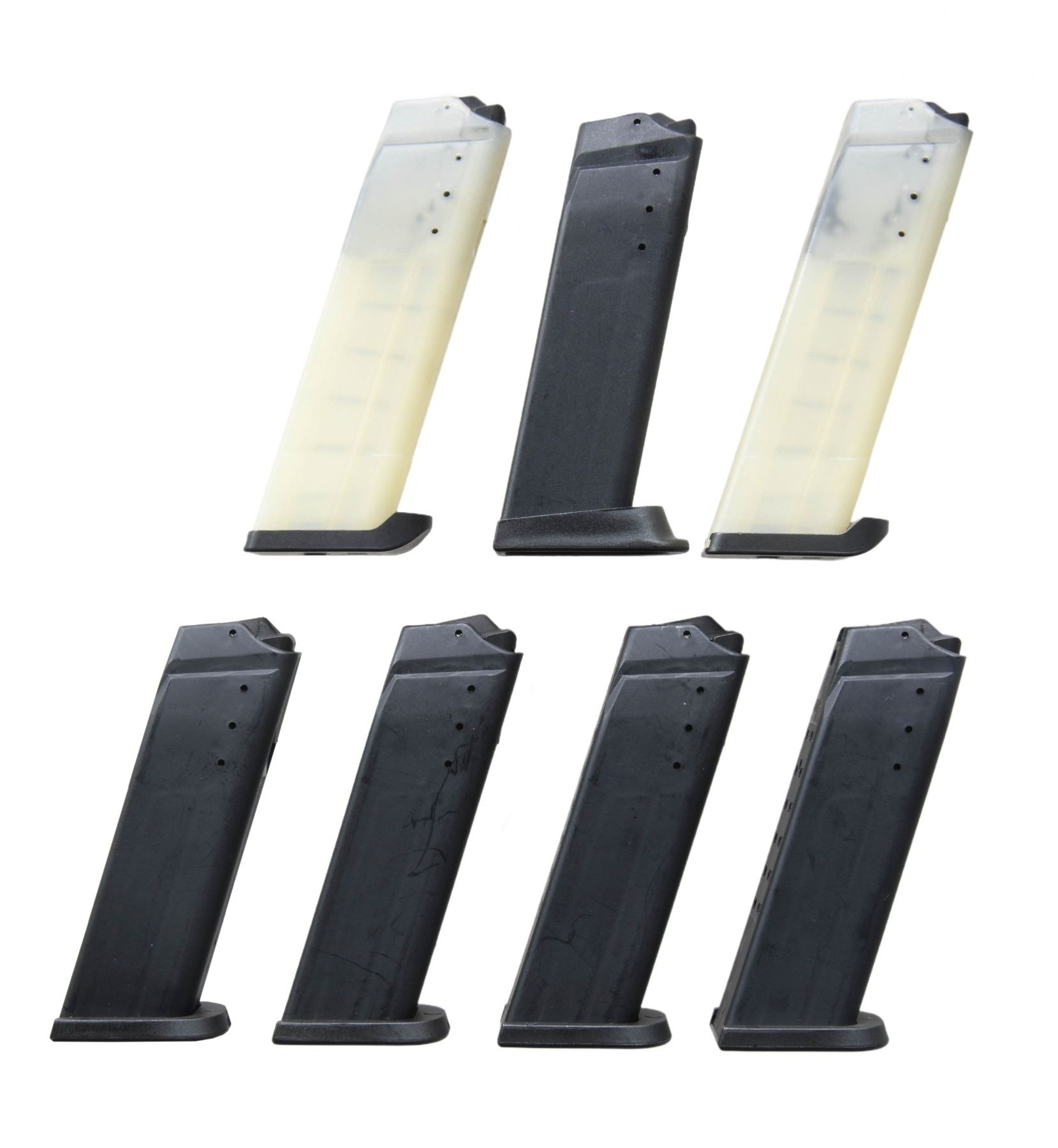 CASE. Cal. 9x19. S# 24-088311. Mfg. Dec. 2004 . Bbl. 5.2". Tall blade & adj. rear sight. Reinforced black polymer frame with checkering on back strap & stippled grip surfaces. MAGS: 3 translucent 18 rd. & 5 ill-fitting 15 rd. UNATTACHED ACCESSORIES: HK nylon case containing manual, info envelop, extra rear sight, extra mags. & lock. CONDITION: near excellent overall appearance with cycling wear on top of barrel. (25-4278/MD). MODERN. $800-1,200.