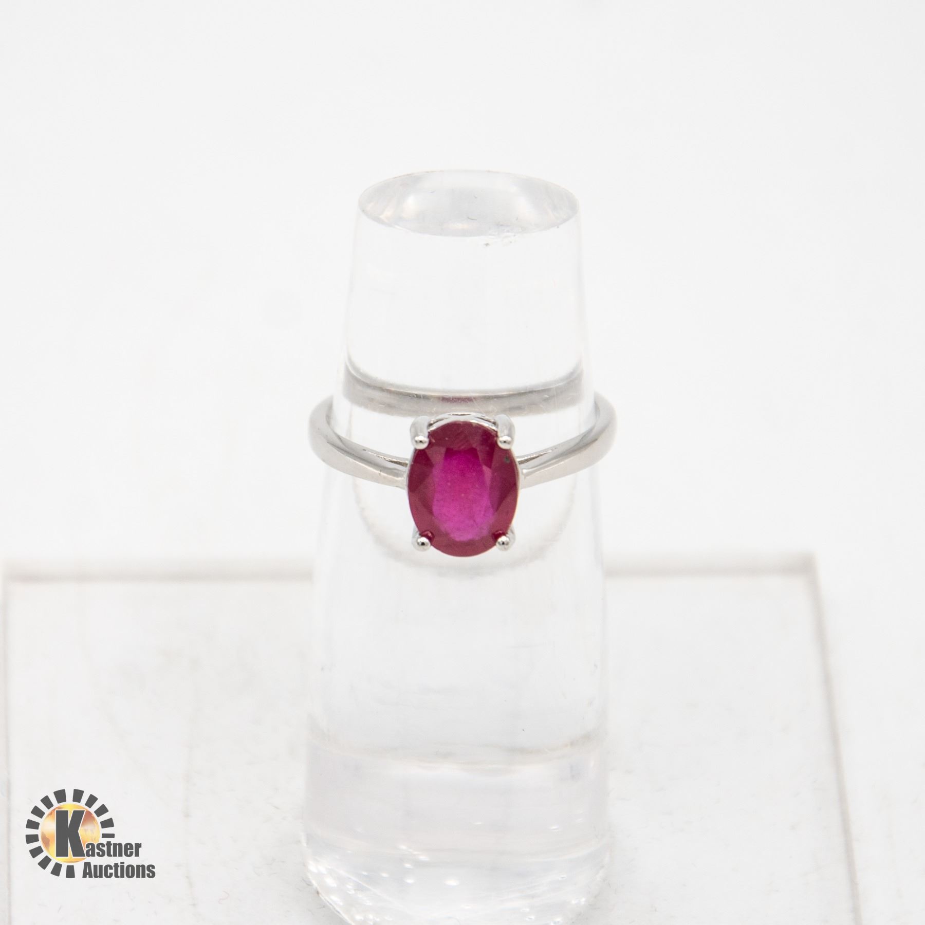 9X7MM RUBY GEMSTONE STERLING SILVER RING, SIZE 7