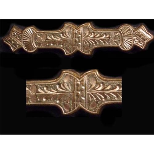 <tr><td><font size="2" face="Arial, Helvetica, sans-serif"><strong><font color="#000033">Title:</font></strong>9ct GOLD ETCHED Victorian Fleur de lis brooch </font></td></tr>