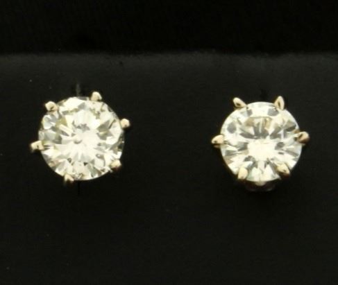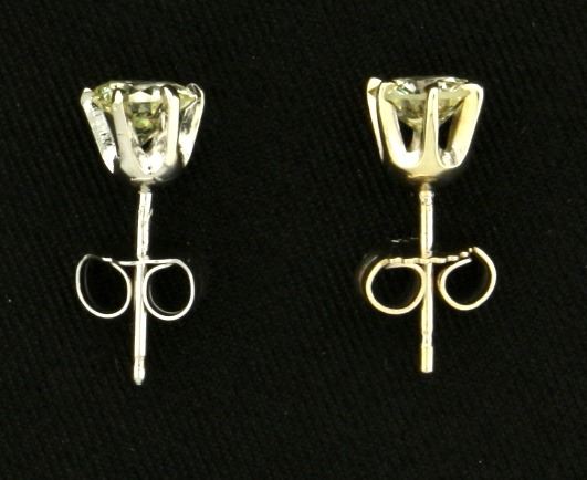 In 14k white gold. Contains two .45ct high quality diamonds with a SI1clarity/J color. Completely eye clean with lots of sparkle. Set in six prong white gold settings with friction backs. 1.1g.
