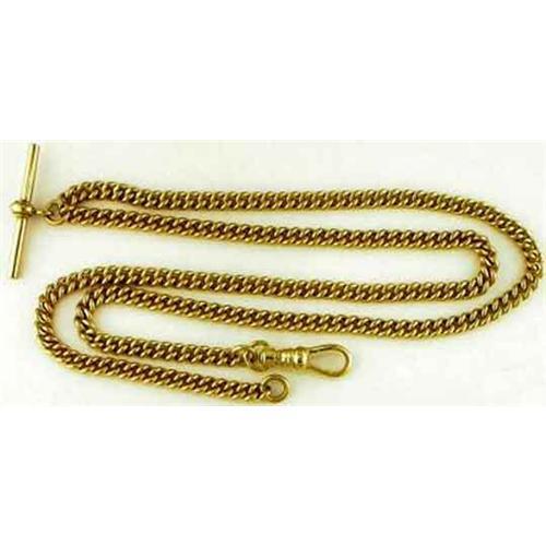 Nice solid 9kt yellow gold close curb link swivel fastener and T-bar pendant double Albert fob chain measuring 22 inches long and weighs approximate 33 grams (1.03 troy ounces) and would make a great gift or complement any fine vintage pocket watch.