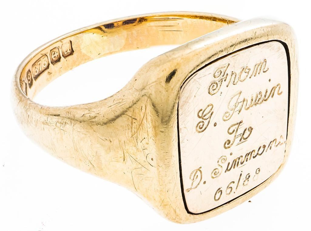 9kt Gold Ring - Reverse Masonic Signet 5.8 Grams