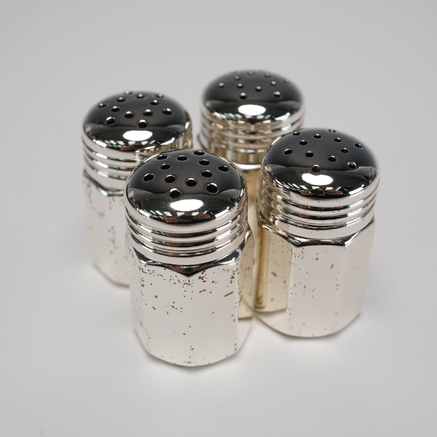 This 29-piece set includes five stainless steel escargot tongs by Inox and 24 small salt and pepper shakers labeled Made in Japan. Perfect for collectors or those looking to elevate their dining experience.