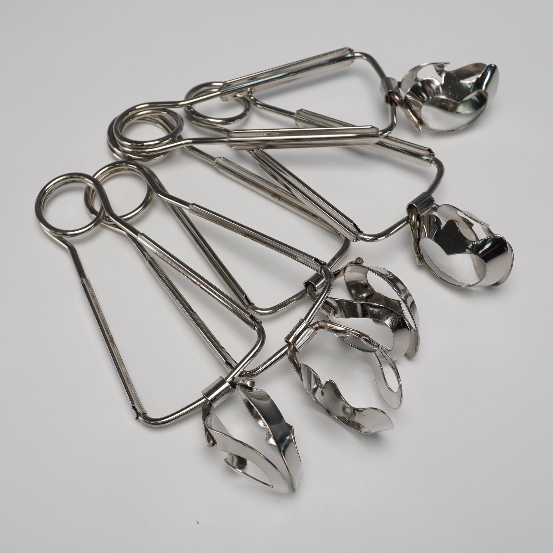 Dimensions: Largest (escargot tongs): 6.25"L x 2.25"W x 1.25"H.