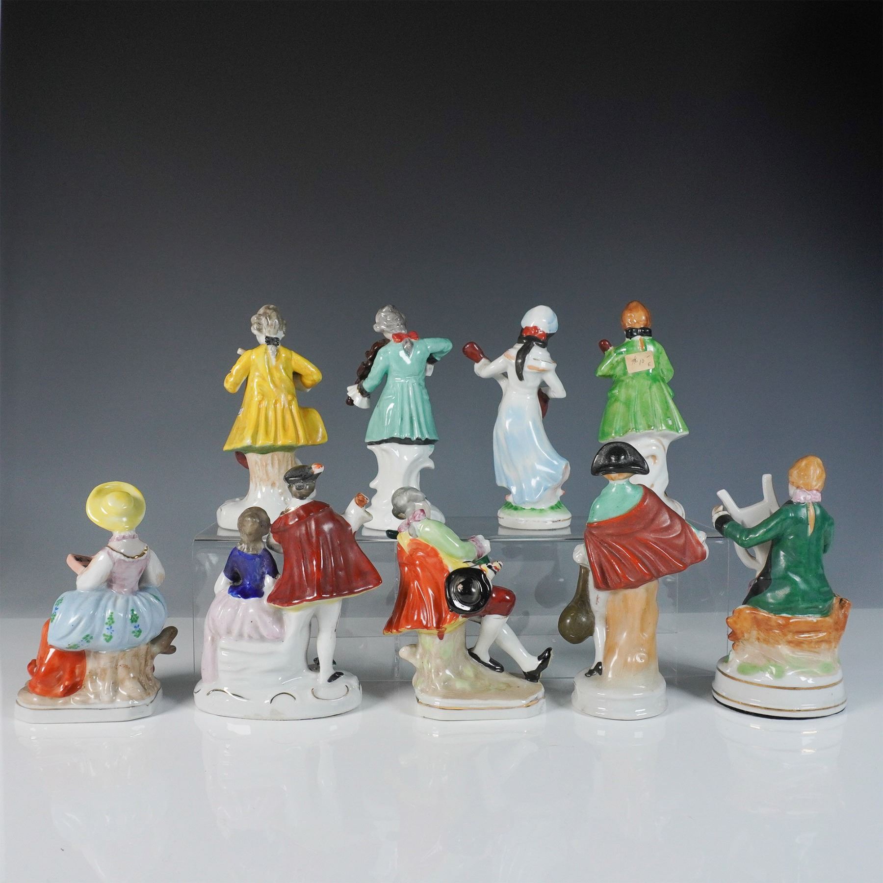 9pc Occupied Japan Porcelain Figurines, Musicians and Elegant Figures