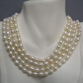 FRESH WATER PEARL STRAND. EACH PEARL MEASURES 9x7 MM. BAROQUE. BLEMISHES VISIBLE. LENGTH: 64 INCHES