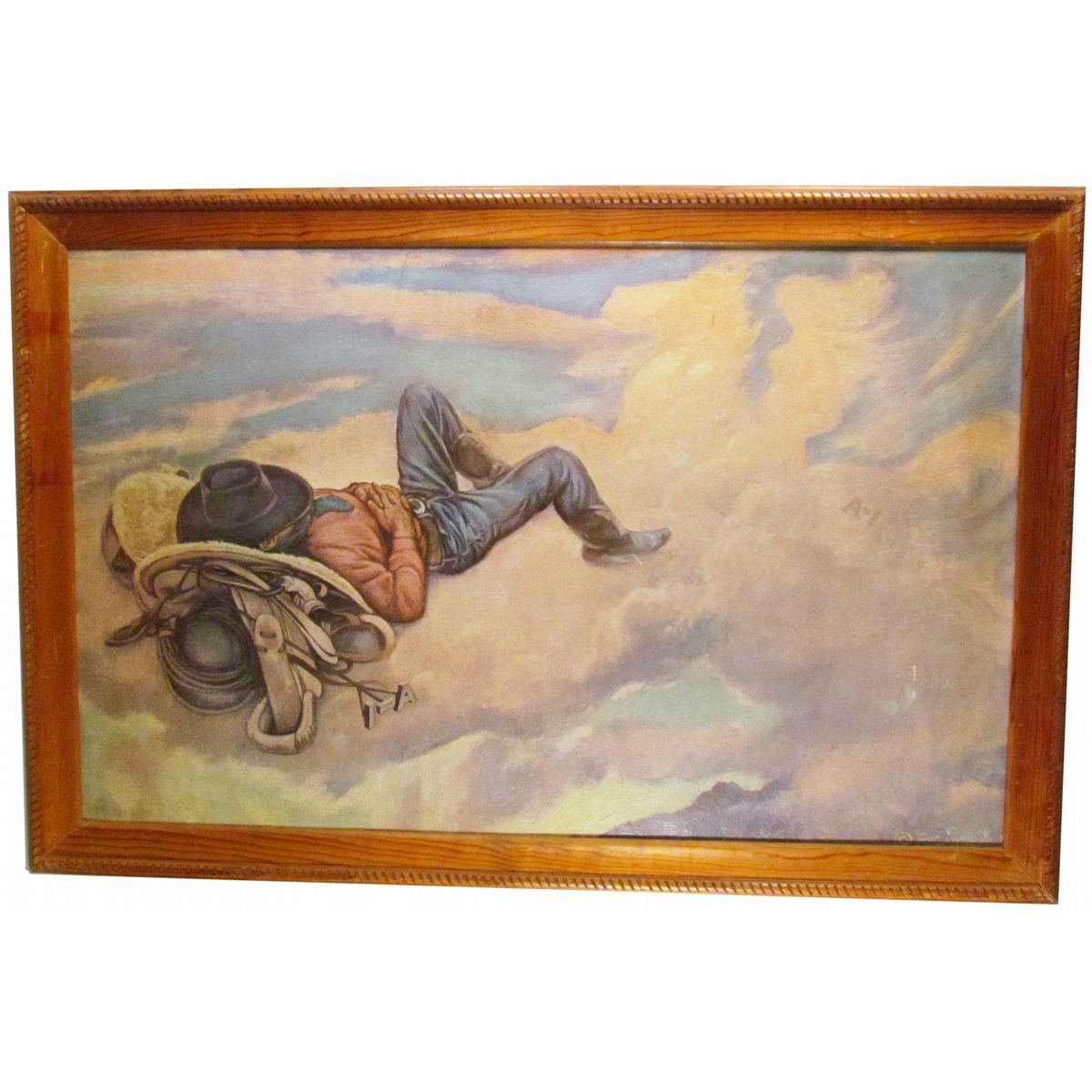 A-1 Brewing Cardboard Poster by L. Mecargee. Entitled,"Dreaming in the Clouds". Very minor rub otherwise excellent condition. 37 X 25 inches in original frame.