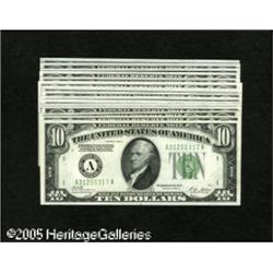 <B>A $10 1928B Fed Dark Green Seal District Set Plus Duplicates, Including</B></I> Boston (2) <B>Choice CU, EF,</B></I> New York <B>Choice CU,</B></I> Philadelphia <B>Gem CU,</B></I> Cleveland (3) <B>Gem CU, Choice CU, CU,</B></I> Richmond <B>Choice CU,</B></I> Atlanta <B>Choice CU,</B></I> Chicago <B>Choice CU,</B></I> St. Louis <B>Choice CU,</B></I> Minneapolis <B>CU,</B></I> Kansas City <B>Choice CU,</B></I> Dallas <B>CU</B></I> stained, San Francisco <B>Choice CU.</B></I> 15 notes Lot:16003