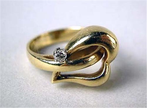 A 14K GOLD HEART SHAPED RING WITH FULL CUT DIAMOND Weighing apx. 0.05 carat full cut diamond, apx. 3.7 dwt.