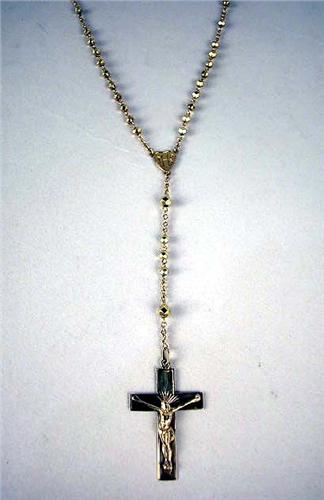 A 14K GOLD ROSARY CHAIN WITH CROSS A 14K GOLD ROSARY CHAIN WITH CROSS