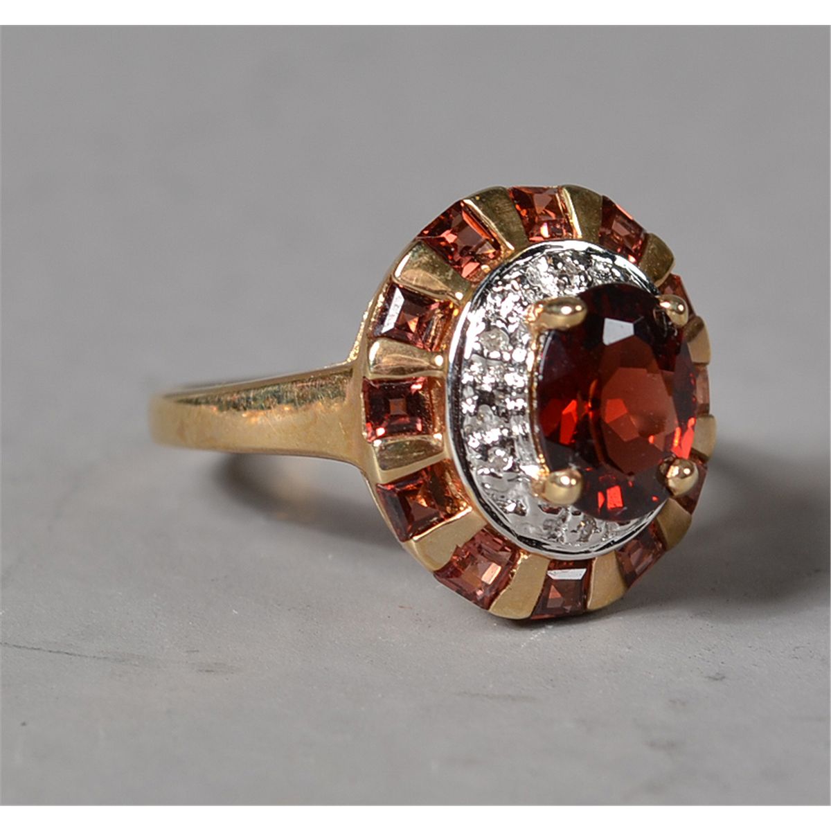A 14K Gold, Mozambique Garnet & Diamond Ring