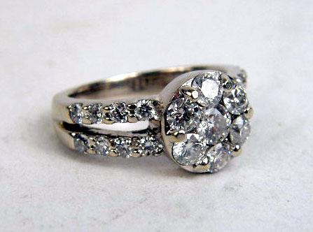 A 14K WHITE GOLD AND DIAMOND RING