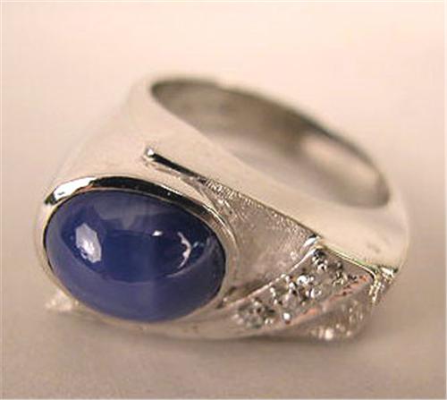 A 14K WHITE GOLD, DIAMOND AND BLUE STAR SAPPHIRE GENTLEMAN'S RING;