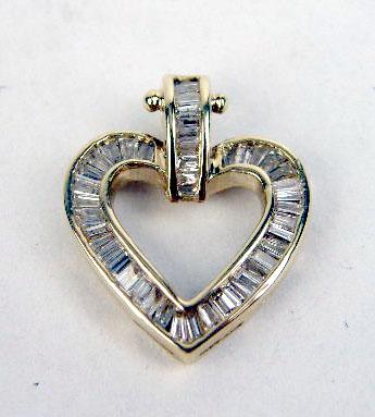 A 14K YELLOW GOLD AND BAGUETTE-CUT DIAMOND HEART PENDANT