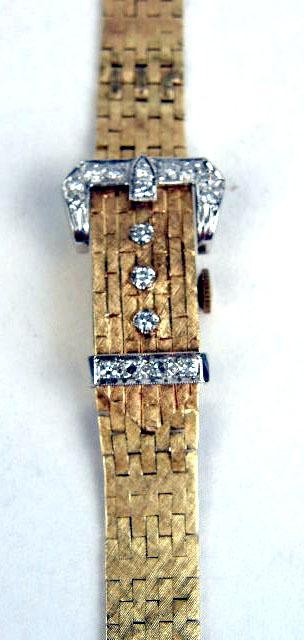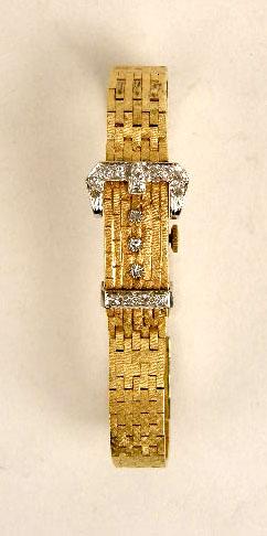 A 14K YELLOW GOLD AND DIAMOND WRISTWATCH