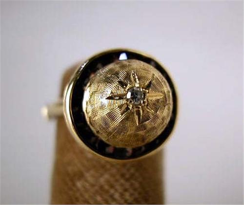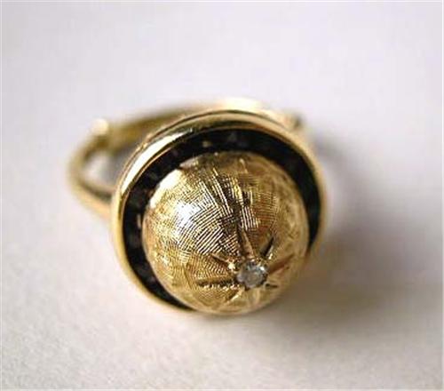 A 14K YELLOW GOLD AND GARNET RING WITH GOLD BALL CENTER Apx. 3 dwt.