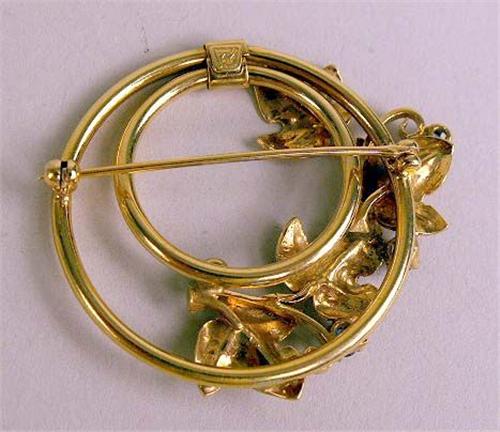 Set with four small pale blue prong set sapphires, 1-1/2"dia.