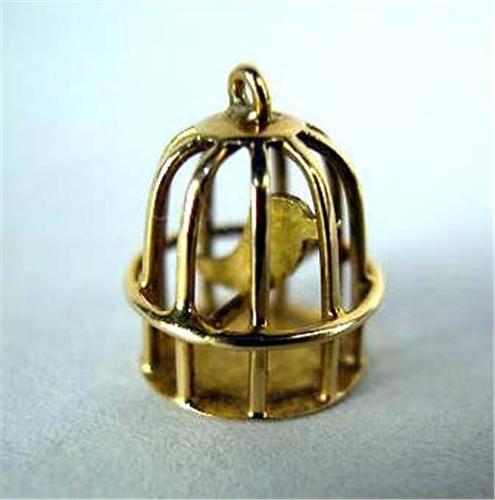 A 14K YELLOW GOLD BIRDCAGE CHARM A 14K YELLOW GOLD BIRDCAGE CHARM;
