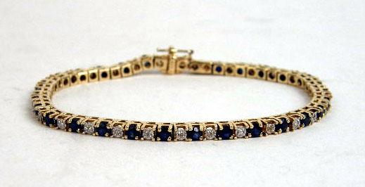 Alternating round prong-set diamonds and sapphires, gross weight apx. 2.9dwts 6 3/4"l