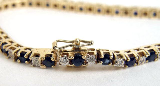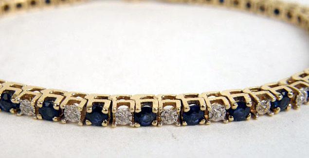 A 14K YELLOW GOLD DIAMOND AND SAPPHIRE LINE BRACELET