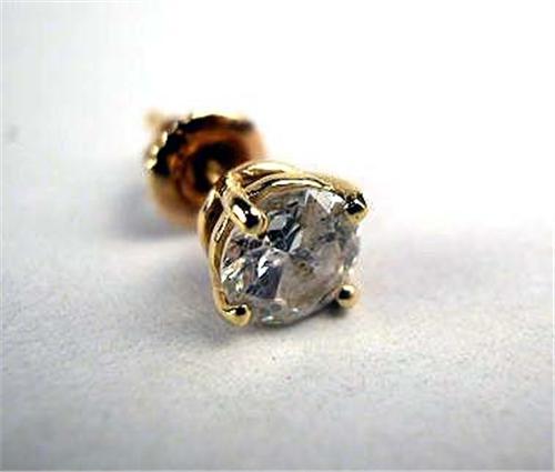A 14K YELLOW GOLD DIAMOND STUD EARRING WITH SCREW BACK With one round brilliant cut diamond, weighin