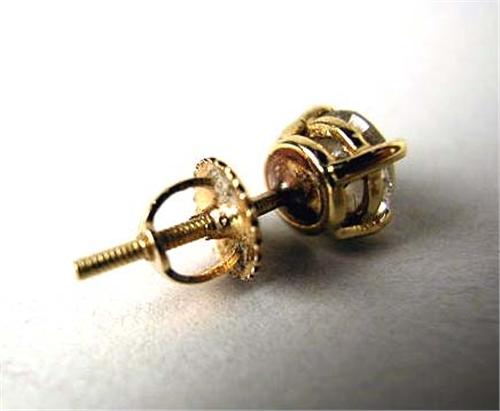 A 14K YELLOW GOLD DIAMOND STUD EARRING WITH SCREW BACK With one round brilliant cut diamond, weighing apx. 1.00 carat, clarity I1, color I-J